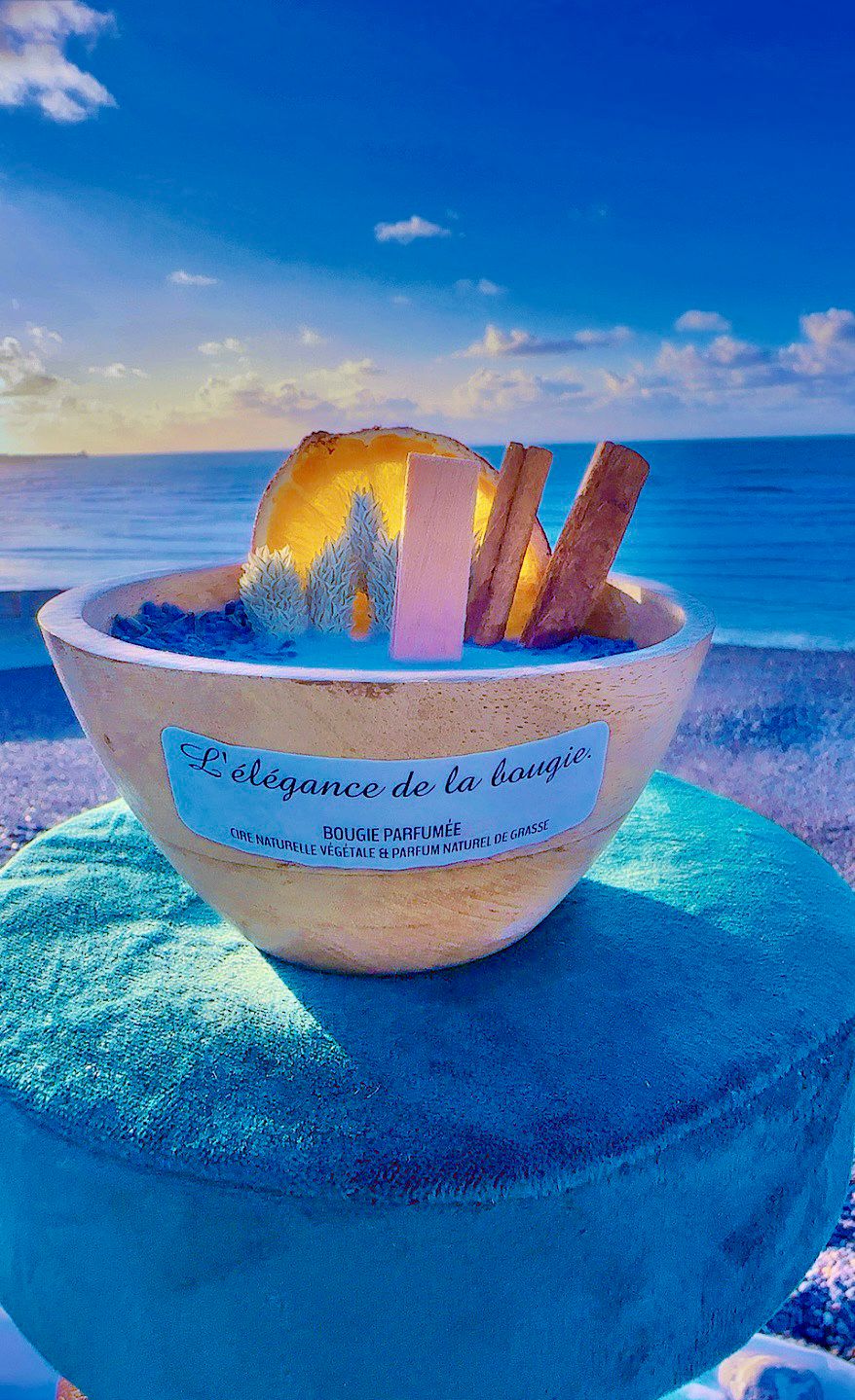 À noter : Tout ce qui est intégré à la cire (l’orange, la cannelle etc) peut rester dans la bougie lors de la combustion.